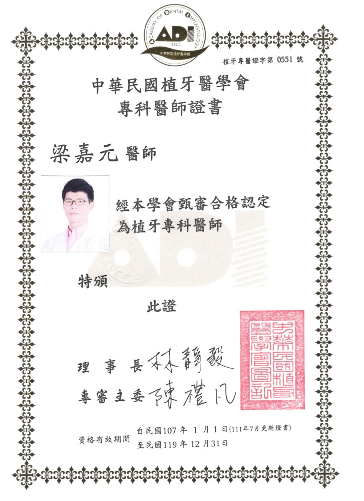 - 中華民國口腔植體學會專科醫師